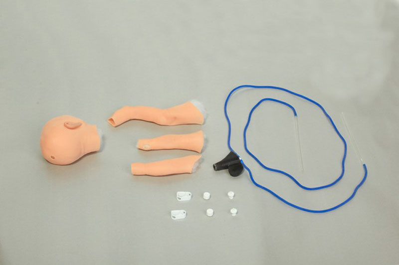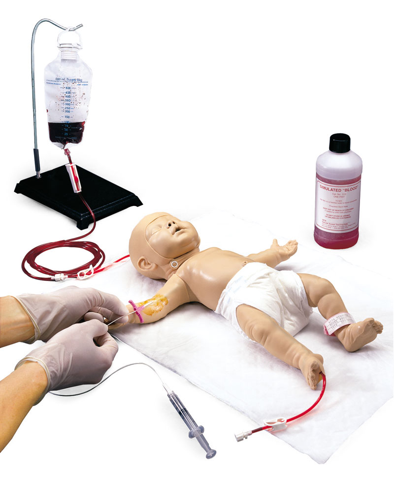 Normale Venenpunktion Anlage von zentralvenösen Kathetern Anlage von umbilicalen (Nabel-) Kathetern Positionierung einer Butterflykanüle Anlage von Verbänden Fixierung von Kathetern Anlage und Pflege von Endotracheal- und Endonasalkathetern, Ernährungssonden Lieferung mit 1,1 Liter künstlichem Blut, Blutbeutel, Windel und Transporttasche.